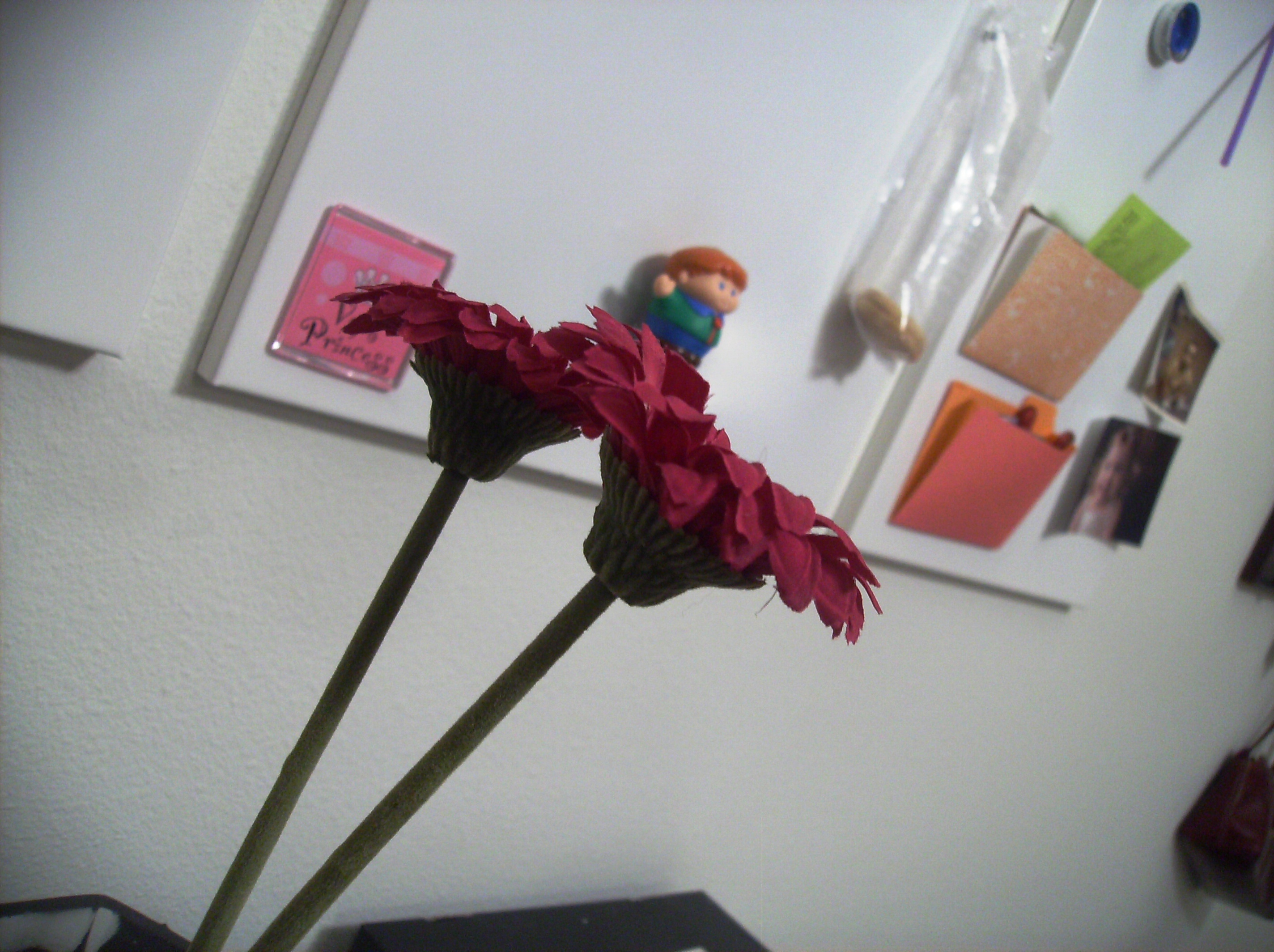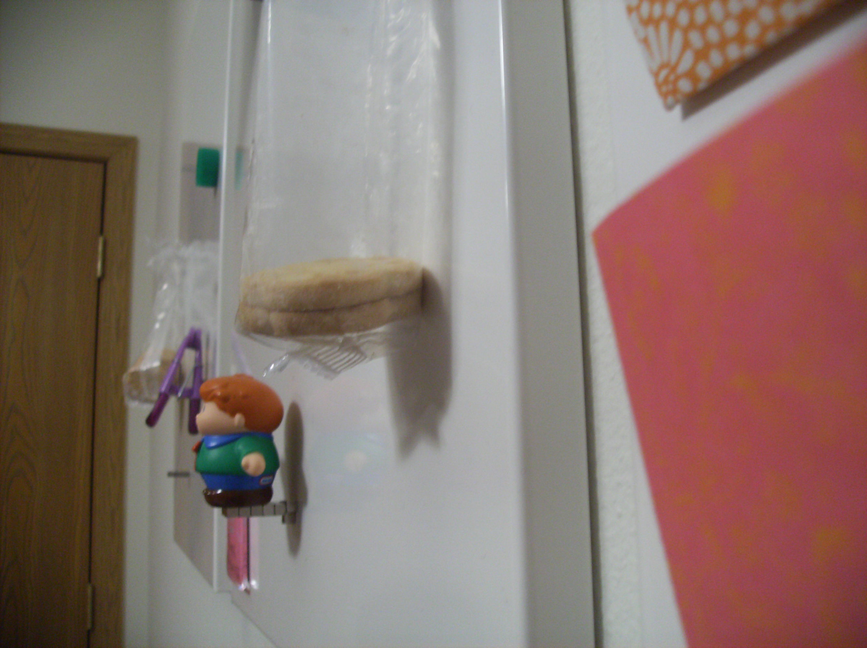 random art. those white magnetic boards have not been filled with photos yet as originally planned. Instead, a few friends chose random items from the living areas and posted them on the boards. Beauty is in the eye of the beholder?!