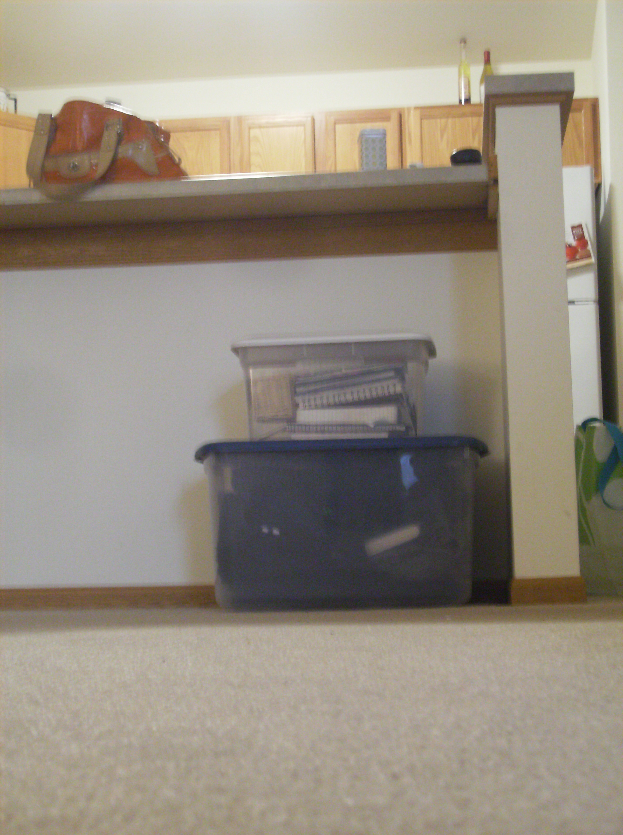 I read blogs of people who have amazingly organized homes and make it all look so simple. Whether or not that is the case, I thought I'd share some of my apartment's corners that are a work in progress.