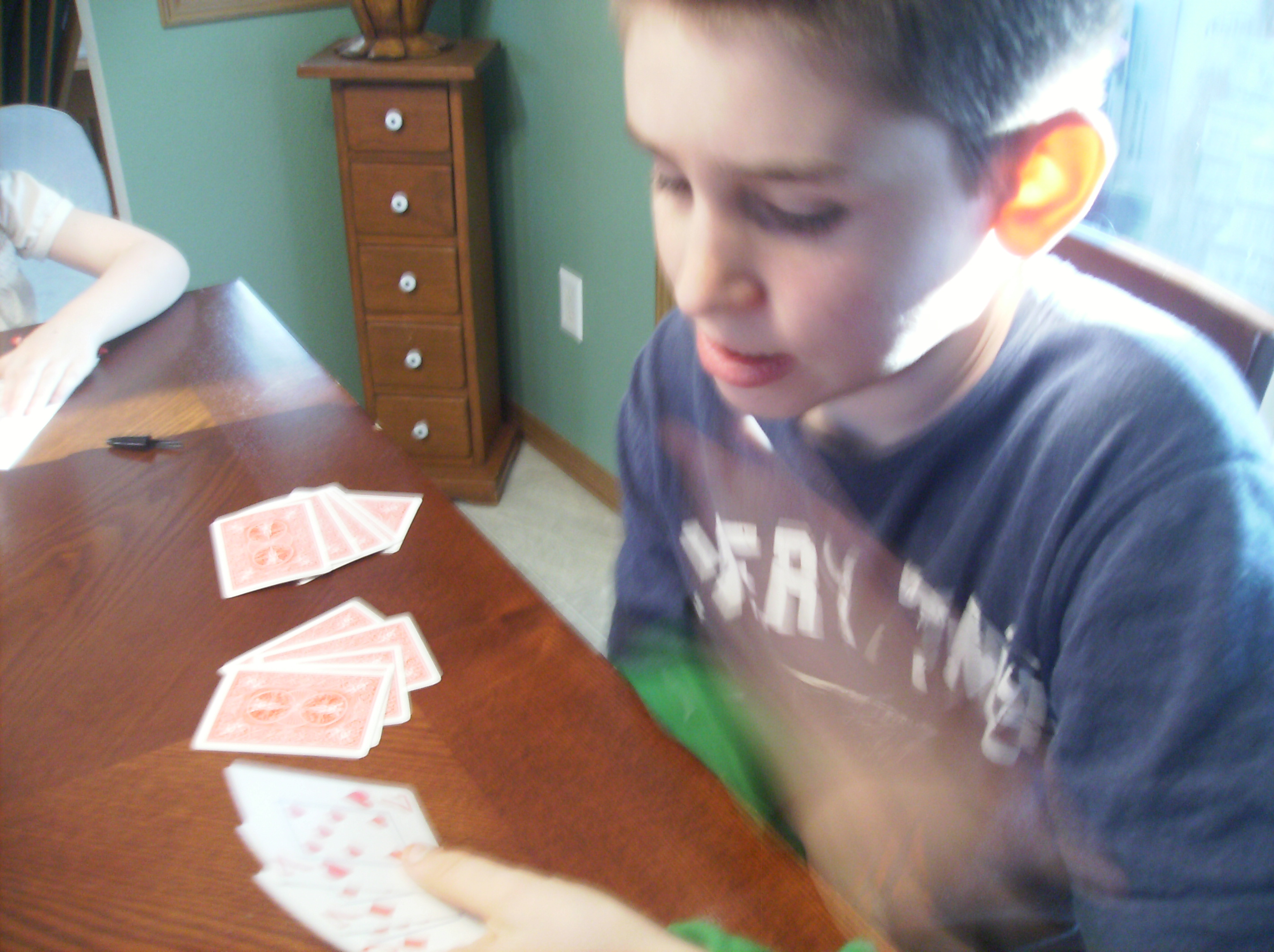 My brother Jay and his family are staying in my mom's small home for another month or so until they move to their new house in Appleton.  So it's one big happy family!  I was there over the weekend – while they were shopping online, playing (the kids), and playing cards.  Documented it because they're all so darn cute!