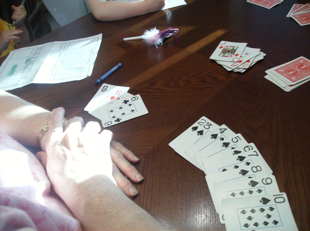 Shanghai Rummy.  I'm addicted to it but watched Mom and my nephew Caleb (11) play.