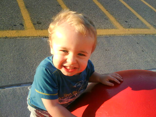 Spent the afternoon and evening with these two: niece mimo and nephew hudson. Who needs a playground? As we entered and exited Target, both ran to the big red balls ("Wipeout" anyone? on ABC) and Hudson would run from one to the other – yelling TOUCH, TOUCH!!! Mimo would sit on one and when her brother intruded, she'd move to the opposite one – on the other side of the entrance. The kids were occupied this way for 15 minutes. We'd just had dinner at Culvers (burger/ice cream place) where I jumped up a million times to get napkins, straws, ketchup and the like. Each time, Mimo yelled I WANNA GO WITH YOU! And she'd hop down, grab my hand and carefully carry the item back to the table. Meanwhile, Hudson has discovered that anything he does is adorable so he was entertaining us while dipping the same crinkly french fry into the ketchup over and over, internalizing all the sugar that's in the ketchup – which only fueled him on to get sillier. How do parents do this all the time?!
