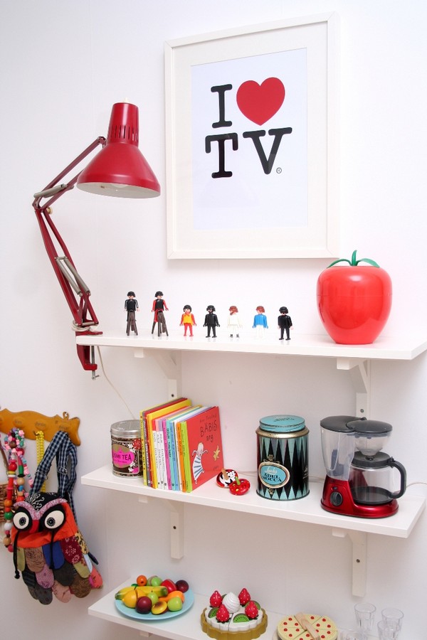 What a pretty little bench! AprillAprill has much goodness to share on her blog. Just look at the following shelves!