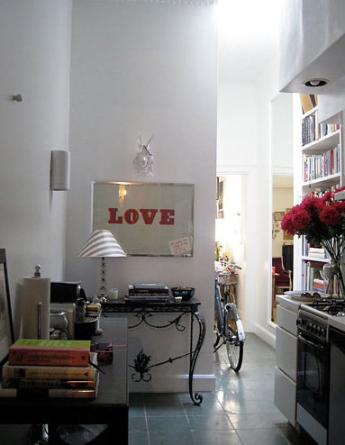 Rita Konig's NYC kitchen is actually in a hallway. Looks to me like it's piles of items she loves and uses!