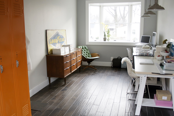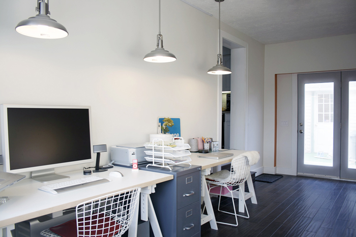 Amanda and her husband and her husband's brother turned a garage into an office. Look at this organized, bright, cheerful office. *RAISING MY HAND* I'd like to work there, please. Pretty please?! Wisconsin isn't all that far from Ohio, ya know.