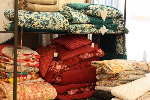 Christine of Lavender & Limes spent a day in NYC and posted these gorgeous photos! (Many more photos on her blog.) I love the sparkling of the silver, the glittering of the chandelier, and the bright colors of the quilts!