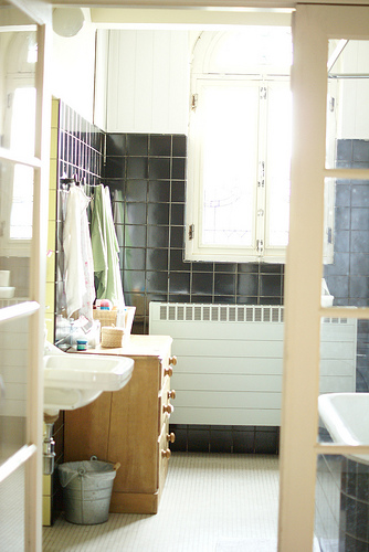 A most organized bathroom. Laura is a professional organizer and has prettied up and organized her bathroom to perfection.
