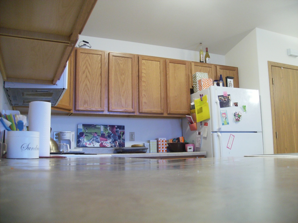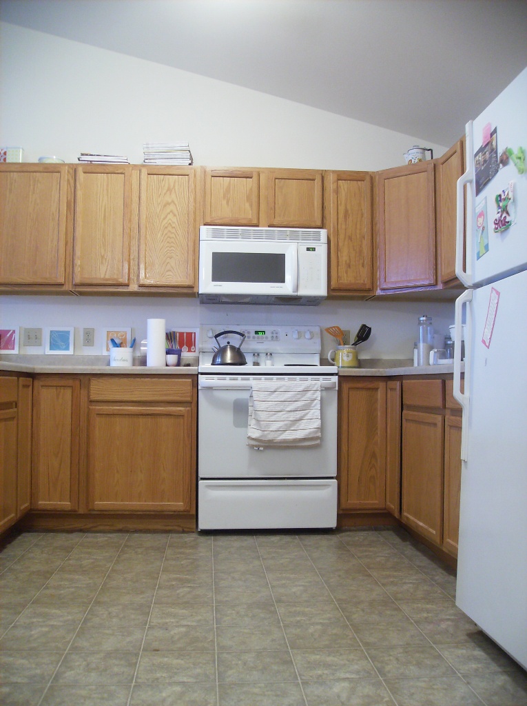 I'm participating in my first Cure – the Apartment Therapy Kitchen Cure for 2010. Here's a photo of my counter that needs help along with other photos of my kitchen. I did not have a need for all the cabinets in my kitchen, so upon move-in, items got tossed into cabinets and drawers without a real system set up. Two years later, it's time for a thorough cleaning and not even a redecorating stint…more like "decorating for the first time".