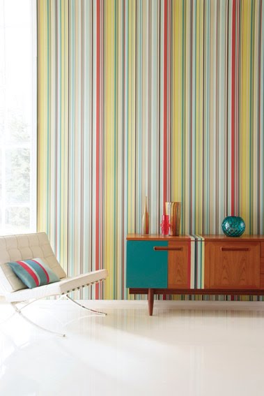 Again, I like the furniture shown with the wallpaper. Stripey goodness!