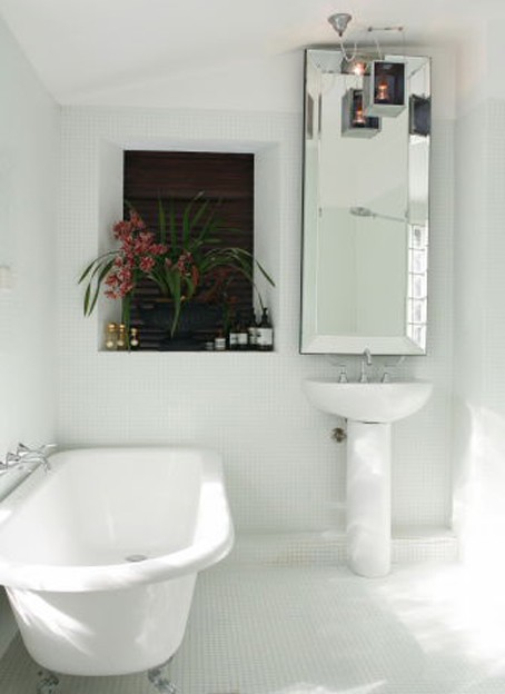 This tall mirror and the tub caught my eye. Simple + elegant.