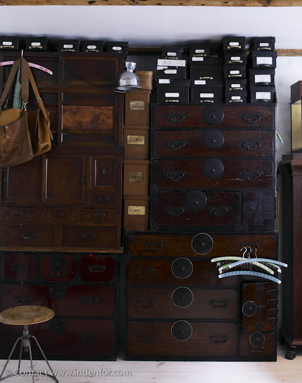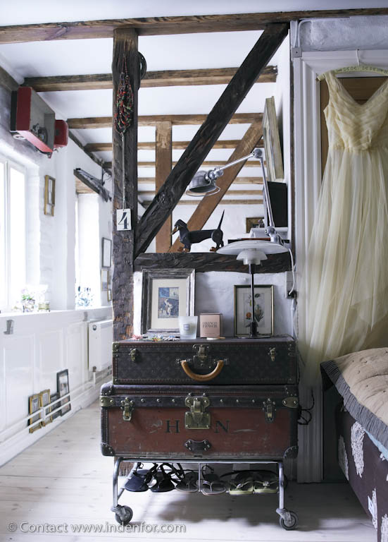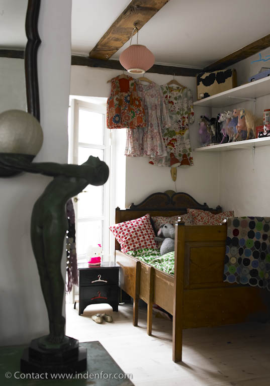 Mille owns the vintage clothing shop, Carmen, in Copenhagen. Her home appeals to me because I live in an apartment that began bland. I can't picture Mille's home starting out as anything but fascinating and moving on to intriguing. The photo above is my favorite..but I have a fondness for the flower photo below as well.