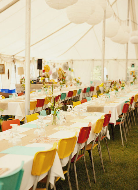This wedding of Angie and Tyson's is so colorful, DIY and downright charming. I love that the wedding dress was only five dollars. Love the colors of the chairs. I even like the bridesmaid dresses! Check out all the photos and the description of the wedding here. I'm not married..but will keep this on file forever – or until I do marry! :)