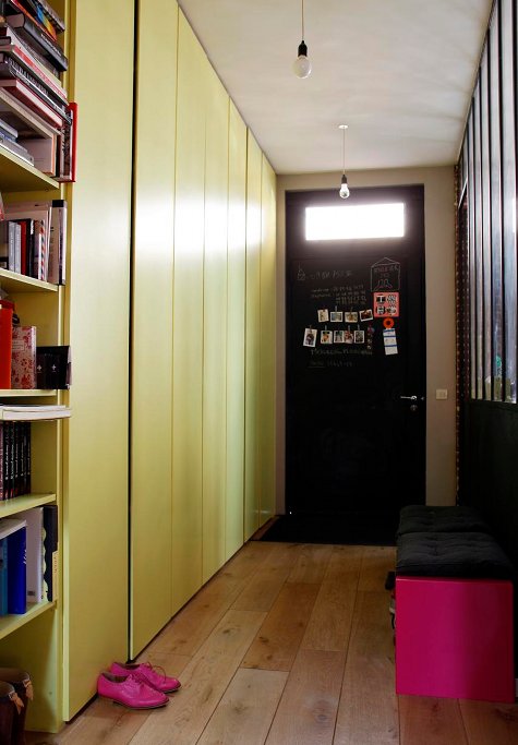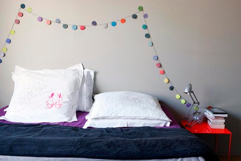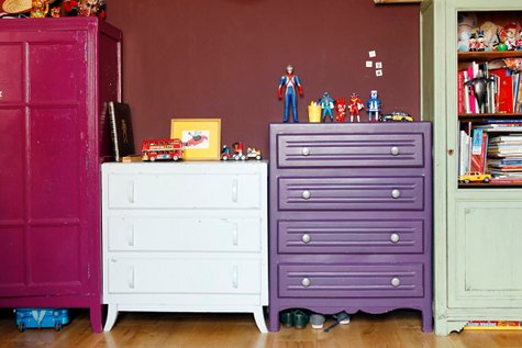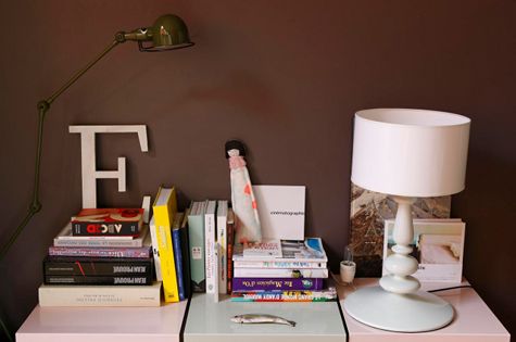 I have new goals in my apartment: pretty bedding like Sandrine Place, a French stylist, has in her Paris flat, a mix of brightly colored furniture – painted fun colors and placed near each other, and a bright entryway with art and other whimsical bits.