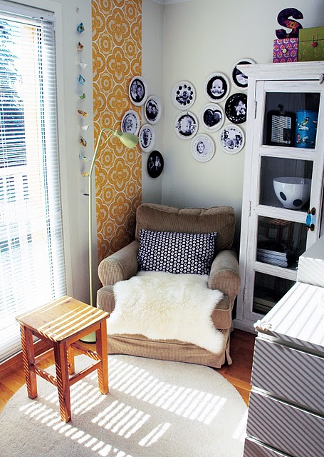 The home of Anja-Patrice Hansen is a charming little thing! I want to pull up a chair in the living room – to play games or have some tea! Then it would be a great afternoon to curl up in the little reading corner to read, crochet or nap! The sheepskin throw looks perfect for a cool fall afternoon.