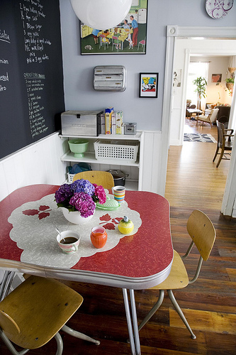 Sharing this kitchen corner from last year. The colors! It's just charming and adorable.