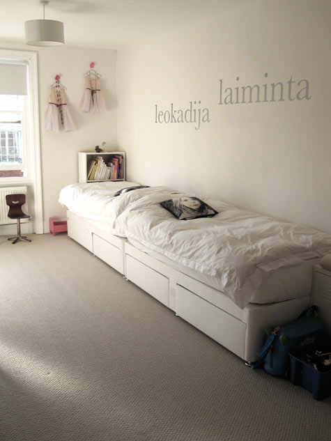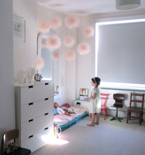 I think the Swiss style is more prominent than the french. It’s totally cool. Love the pom poms in the little girl’s room. They’re darling!