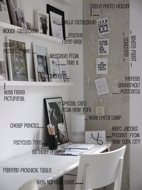 Lovely home studio/office of Desiree (Vosges Paris). I was curious about the contents of the photo and was pleasantly surprised to scroll down and find the labeled objects in the photo below.