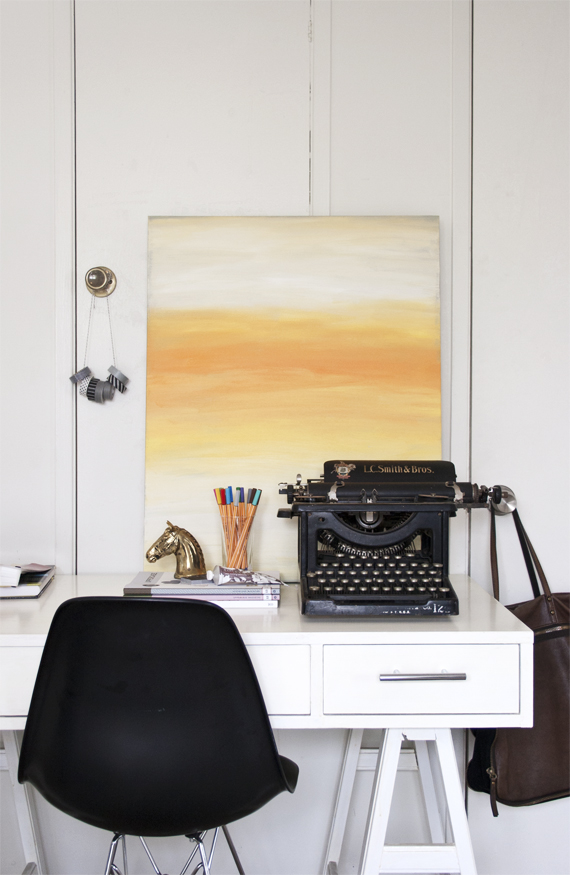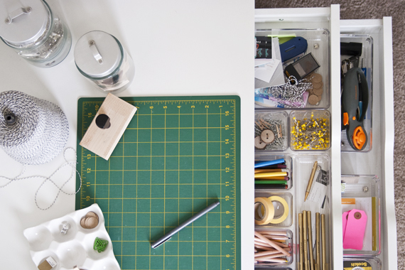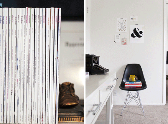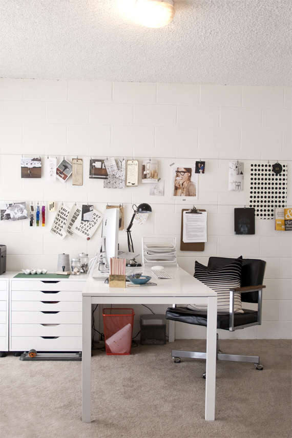 Good morning! My favorite category on Eva Black's blog is Spaces…and the most recent space does not disappoint! It's an organized, personaliaed, pretty workspace that apparently is a work in progress.