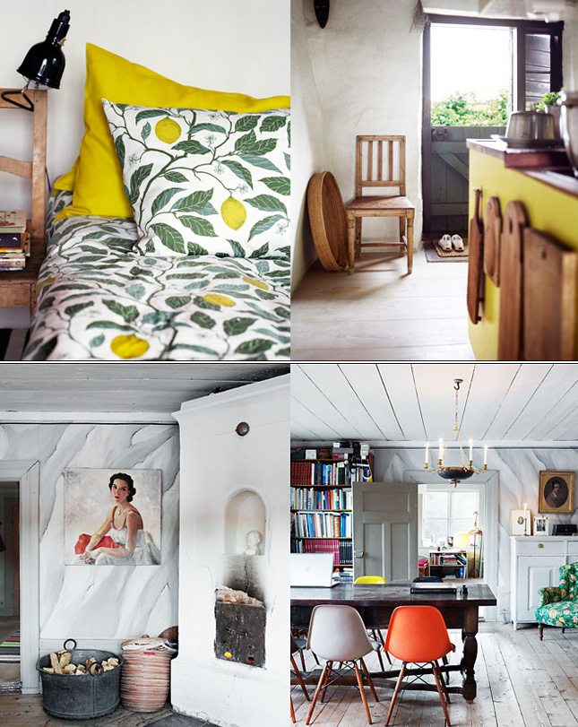Beautiful photos by Swedish photographer Anna Kern. I was drawn in to view her photos by the pops of red in the first couple photos..and then by the mismatched chairs and chandelier in the last photo.
