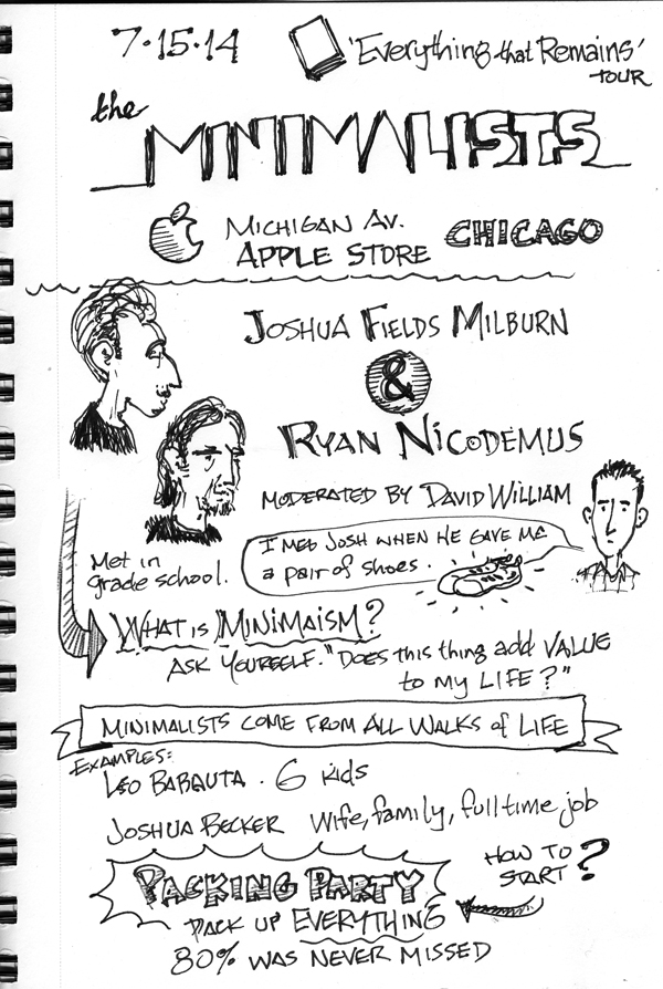 Was happy to see Joshua and Ryan (The Minimalists) in Milwaukee again as they promote their book Everything That Remains. The last event they had in Milwaukee was in December, 2011, and the group included eight of us plus Joshua, Ryan, and their friend Joel Runyon. A mere three years later, the event at Boswell Books included hundreds of attendees gathered to hear Josh and Ryan’s story and listen to a reading from the book.The Minimalists are quite entertaining, at ease with themselves and others, and are quite open and vulnerable in their writing.