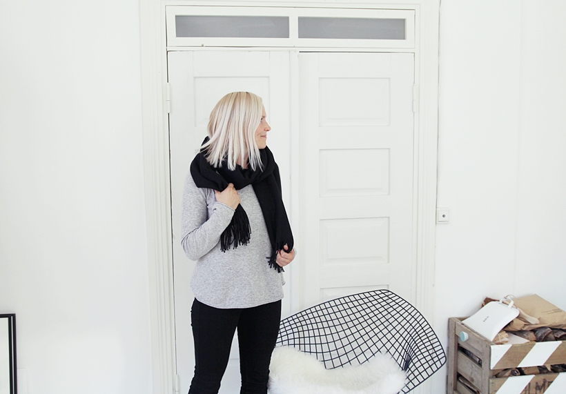 My wardrobe is pretty minimalist.  I rely on black, white, and gray with tees and scarves providing colorful accents. I just purchased some gorgeous tees for fall in black, white, and grey and am pretty giddy about them.