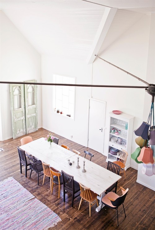 A renovated chapel with a gorgeous open living and dining area.