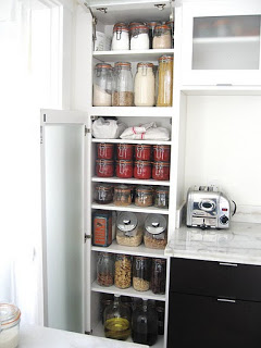 Orderly shelves to inspire further organization in my apartment's kitchen.